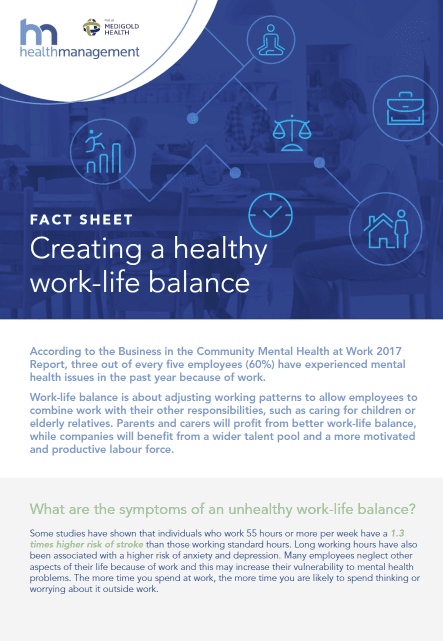 Download our fact sheet on how to create a healthy work-life balance here.