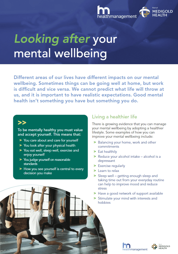 Welcome to your comprehensive health and wellbeing advice page! Here, you’ll find a collection of helpful fact sheets curated by our occupational health provider, Medigold Health. Whether you’re seeking guidance on how to look after your mental wellbeing, how to create a healthy work-life balance or improve your resilience, Medigold can help.