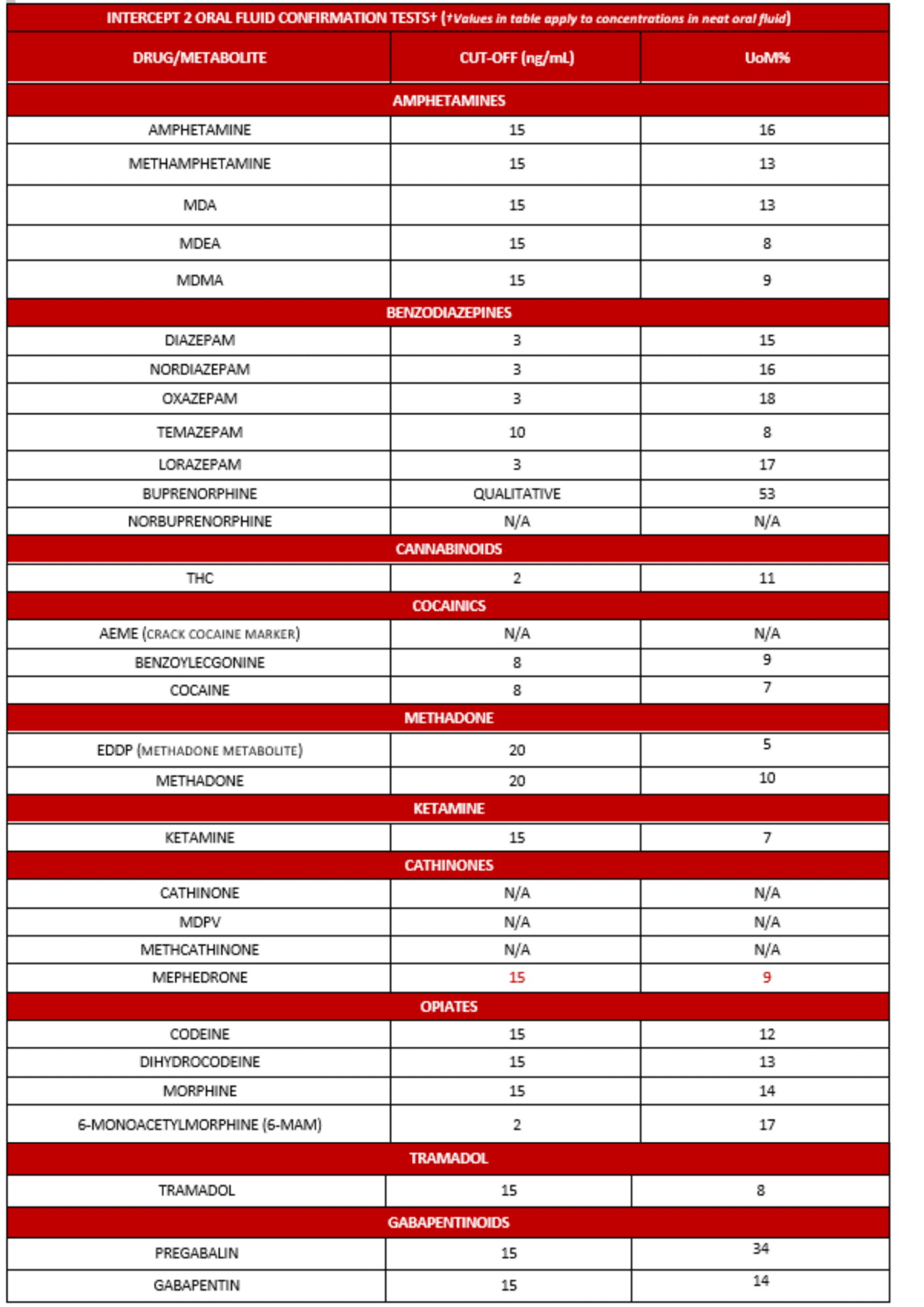 This abbreviated SLA provides the cut-offs and associated Uncertainty of Measurement (UOM) for confirmation analyses performed in oral fluid and should be read in conjunction with MATLFOR018 v22.1 – Laboratory Service Set Up Form and Standard Level Agreement, effective October 2021. All other parts of the SLA remain unchanged.